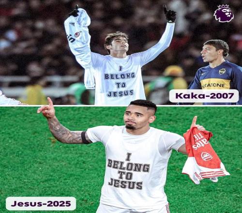 进球后,热苏斯做出了卡卡同款的进球动作,而且他的内衬上也同样写着“我属于耶稣”。当然这句话也可以双关,翻译为“我属于自己”,因为热苏斯与耶稣同名。