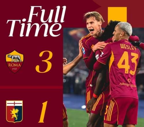 北京时间12月30日,在意甲第17轮的比赛中,罗马依靠马蒂亚斯-苏莱、夸迪奥-科内以及埃文-弗格森的进球主场3-1击败热那亚,排名重回积分榜第四位。赛后根据Opta的统计,罗马在2025年